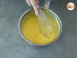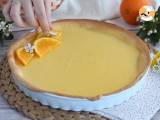 Gut vermischen und die Orangencreme auf den Boden des Kuchens gießen. Glätten Sie die Oberfläche und stellen Sie den Kuchen 1 Stunde lang in den Kühlschrank.