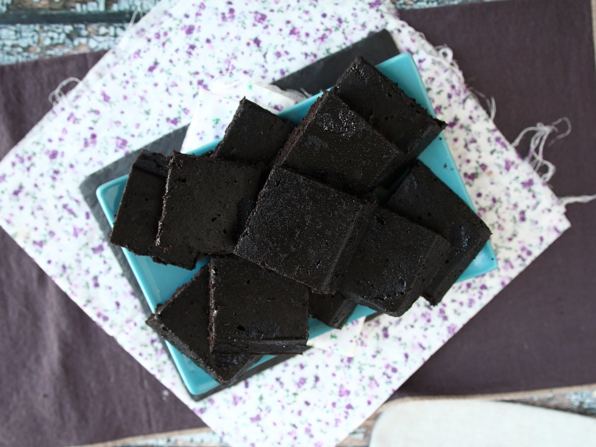 Sie können diesen Kuchen für Halloween backen und ein rotes Fruchtcoulis darüber geben ;-)