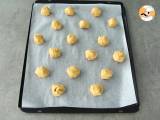 Aus den Teigstücken kleine Kugeln (ca. 16) formen und diese auf Backpapier legen. Für 25 Minuten bei 140 °C in den Ofen geben.
