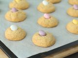 Nehmen Sie die Kekse aus dem Ofen und legen Sie die Eier hinein (sie sollten noch warm sein).