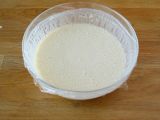 Nach und nach das Mehl unterrühren. Die Schüssel abdichten und 30 Minuten lang kühl stellen. Vor Gebrauch erneut verrühren.