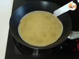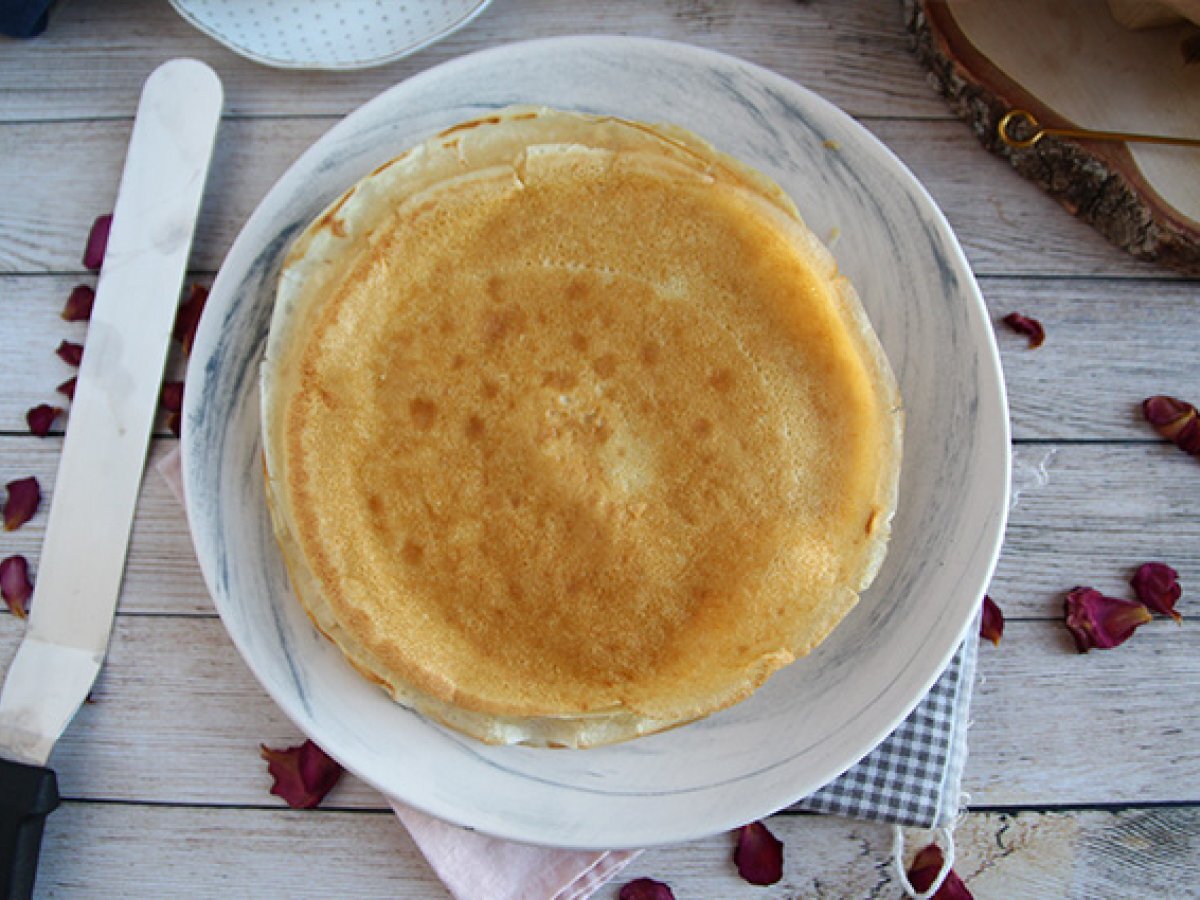 Den Teig in der Pfanne verteilen und die Crêpes von beiden Seiten goldbraun backen lassen. Dabei mit dem Pfannenwender wenden, wenn sich die Ränder lösen.