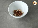 Die Haselnüsse in kleine Stücke schneiden (1 bis 2 pro Abdruck).