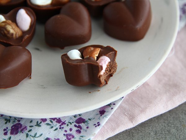 Und los geht's, Ihre Marshmallow- und Haselnuss-Pralinen sind fertig!