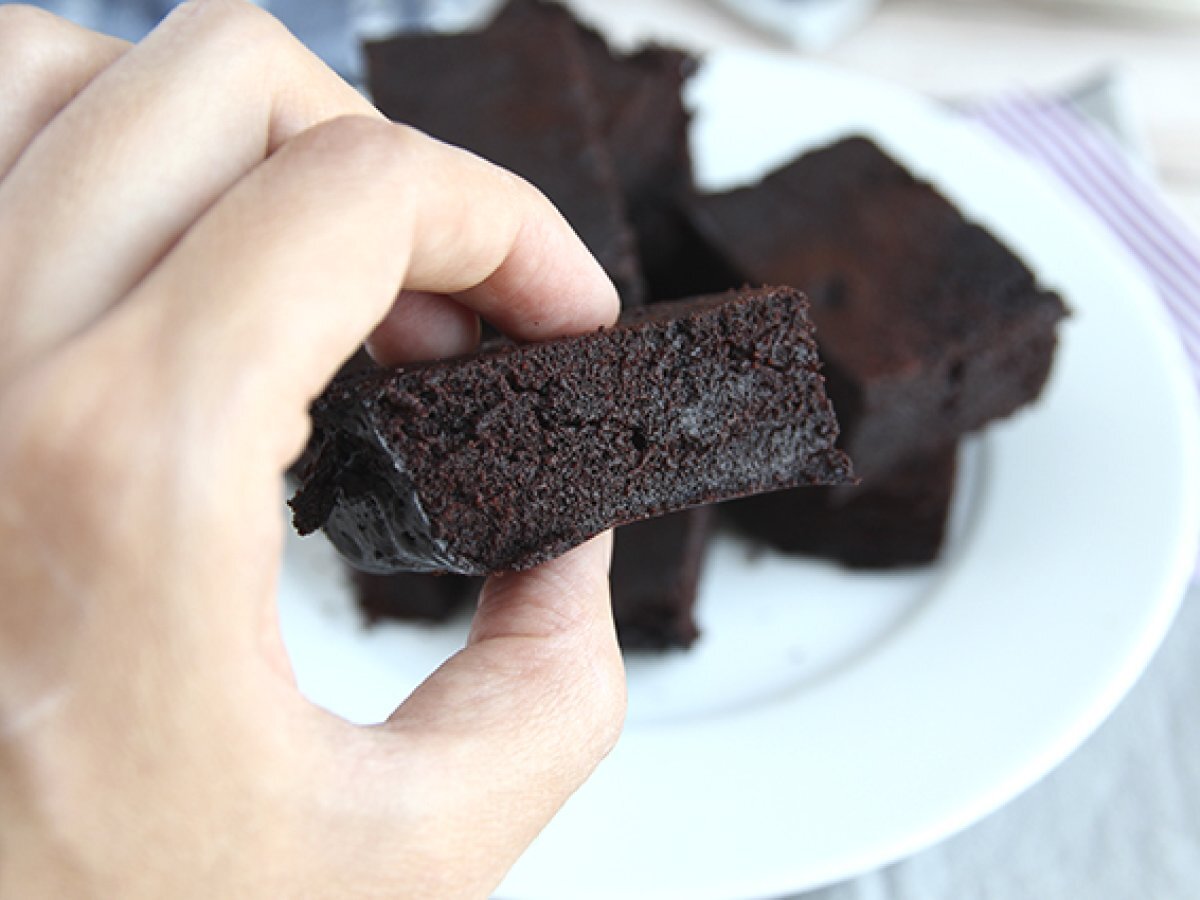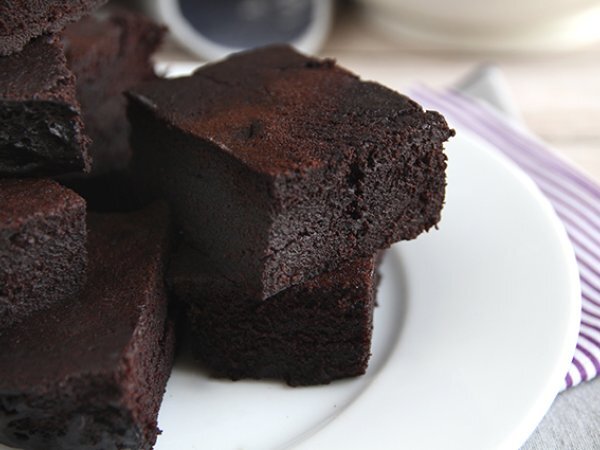Faulheit + Völlerei + wenig Kalorien = dieses Rezept! Kuchen mit einer Brownie-ähnlichen Textur und einem intensiven Kakaogeschmack. Servieren Sie ihn mit einer Kugel Eis, Zuckerguss, Ganache, roten Früchten oder mit Kakaostreuseln. Da er milchfrei ist, eignet er sich auch für Menschen mit Laktoseintoleranz und ist außerdem eifrei.