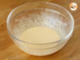 Lösen Sie die Hefe in lauwarmer Milch (oder, falls dies nicht möglich ist, lauwarmem Wasser) auf. 10 Minuten bei Zimmertemperatur stehen lassen.