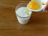 Nach und nach die Mischung aus Milch + Ei hinzufügen und dabei rühren, bis eine homogene Masse entsteht. Die restliche Milch + Ei für die Bräunung beiseite stellen.