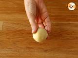 Den Teig zu einer Kugel formen und die Kugel in zwei Teile teilen. Jede Kugel in 6 Teile schneiden und dann aus jedem Teil kleine Kugeln formen.