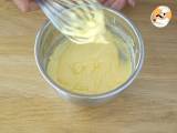 Das Eigelb mit dem Zucker schlagen, bis die Masse weiß und cremig ist. Die Maisstärke hinzufügen und gut vermischen.