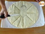 Drehen Sie jede ausgeschnittene „Speiche“ und drehen Sie jede Speiche gleich oft, um ein gleichmäßiges Ergebnis zu erzielen (hier haben wir dreimal gedreht).