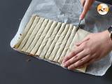Etwa 1 cm breite Streifen in den Teig schneiden.