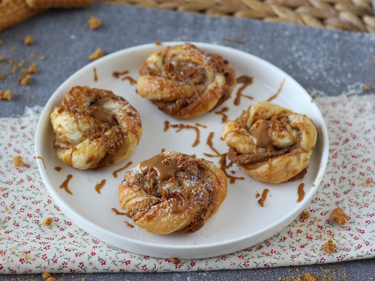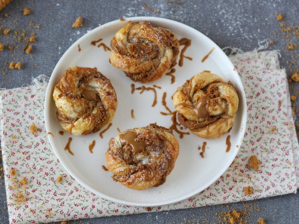 Du kennst unsere Liebe zu Spekulatius-Keksen, oder? Ob in Form von Tiramisu, ab Käsekuchen oder aus mousse in verrines können spekulatius sehr einfach verwendet werden, sei es zum nachtisch oder als zwischenmahlzeit. Bereiten Sie mit sehr wenigen Zutaten und in nur wenigen Minuten dieses Express-Dessert mit einem Spekulatiusaufstrich zu, der mit der Knusprigkeit des Blätterteig. Für noch mehr Genuss geben Sie Spekulatiuskrümel, geschmolzenen Aufstrich und Puderzucker auf Ihre Kekse!