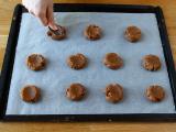 Aus einem Esslöffel Teig Kugeln formen und diese auf ein mit Backpapier ausgelegtes Backblech legen.
