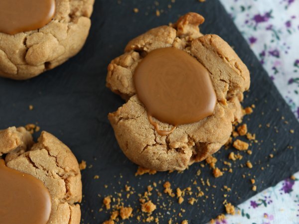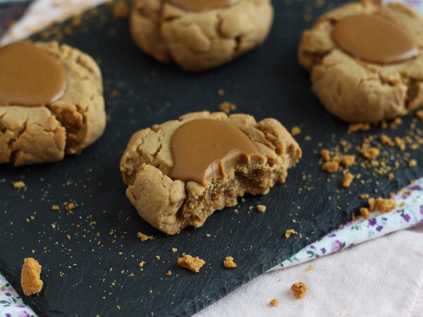 Nehmen Sie die Kekse aus dem Ofen. Die Spekulatiuspaste in der Mikrowelle schmelzen. In die noch lauwarmen Kekse bei Bedarf Mulden bohren und diese mit einem Teelöffel geschmolzener Spekulatiuspaste füllen. 10 Minuten kalt stellen.