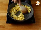 Die Äpfel schälen und in kleine Stücke schneiden. Anschließend in einer Pfanne bei mittlerer Hitze 10 Minuten anbraten, dabei gelegentlich umrühren.