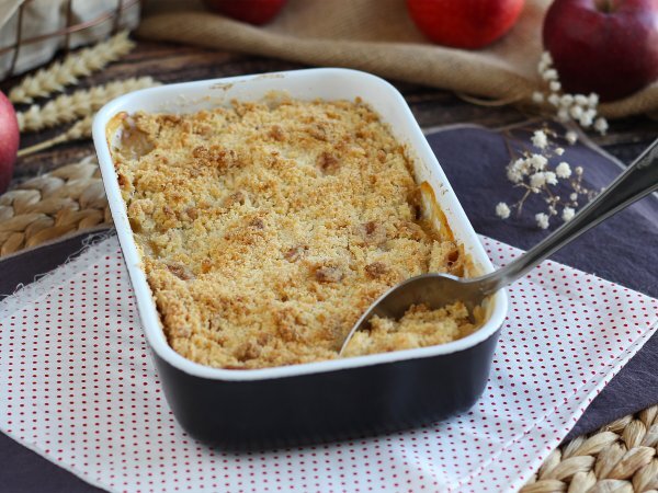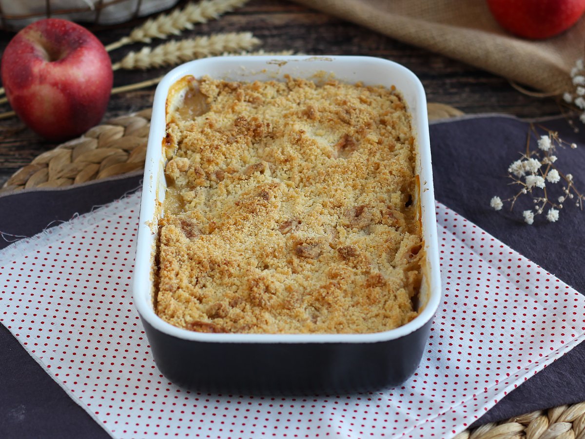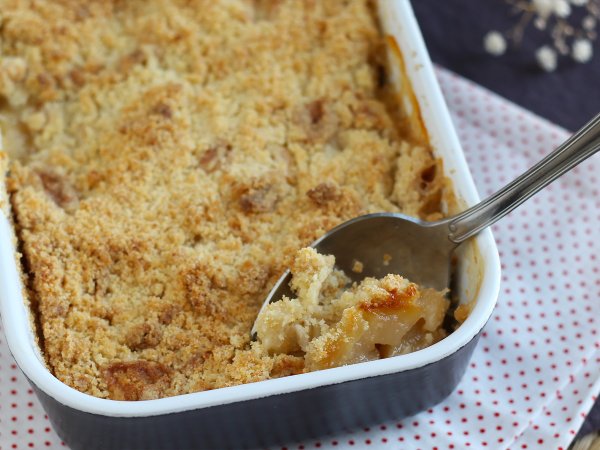 Ein Muss zum Nachtisch mit Äpfeln: der Streusel! Ganz einfach zuzubereiten. Bereiten Sie dieses Dessert gemeinsam mit Ihren Kindern zu, um eine köstliche Aktivität zu gewährleisten ;-) An Zutaten benötigen Sie nur 5 Stück! Mit unseren Schritt-für-Schritt-Erklärungen unten liegt es an Ihnen, dieses Rezept mit schmelzenden und knackigen Äpfeln zuzubereiten