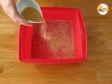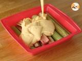 Diese Paste über den Rhabarber gießen und die Oberseite glatt streichen.