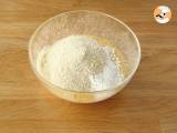 Mehl, Backpulver, Salz und gemahlene Mandeln hinzufügen und gut vermischen.