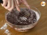 Zur anderen Hälfte das restliche Mehl (125 g), 1 EL hinzufügen Hefe und Kakaopulver hinzufügen. Gut mischen.