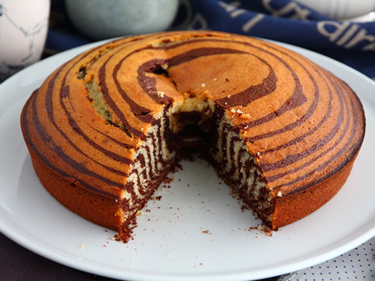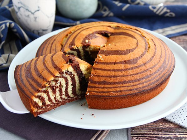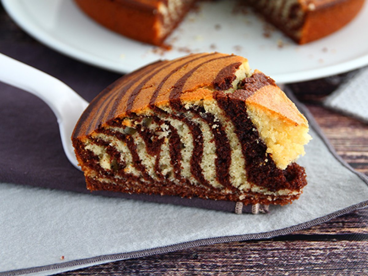 Der Zebrakuchen sollte bei 180°C für etwa 40 Minuten gebacken werden. Überprüfen Sie mit einem Zahnstocher, ob er durchgebacken ist; er sollte sauber herauskommen.