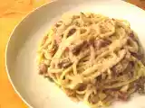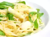 Zutaten: 200 g schwarze Spaghetti (Nudeln al nero di seppia) 3 Knoblauchzehen 1 getrocknete Chilischote (oder zwei, wenn Sie es scharf mögen) 200 g Gulas...