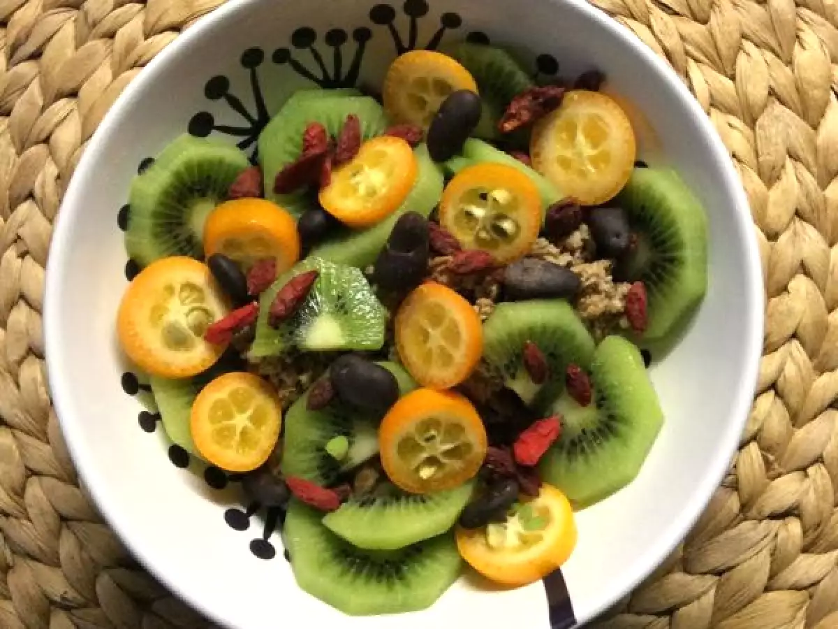 Nachdem ich letzte Woche so Appetit auf Müsli bekam durch eure Posts, gab es bei mir heute natürlich auch Müsli! Dazu Sojagurt, Kiwi, Kumquat und (Schoko-)Gojis. In der Mittagspause traf ich wieder eine Freundin - wir hatten uns für McDonald entschieden. Da es dort ja nicht soooo viel veganes gibt, entschied ich mich für den Gardensalad. Den wollte ich pimpen und hab mir noch Paprika, Mais, Radieschen, Kumquat, Topinambur sowie geröstete Sonnenblumenkerne eingepackt. Dazu gab es natürlich auch noch Pommes :-) Im Gratitude gestern war es zwar wesentlich leckerer, aber so geht es auch mal. Bereits recht früh am Abend gab es dann frisches Brot von der Hofpfisterei und darauf einmal Daiya (nicht fotografiert), Dill & Cucumber von Violife und Bruschetta sowie Hummus und Chorizo. Und jetzt geht es gleich ab zum Yoga!
