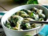 Zutaten: 4 Scheiben Putenfleisch 250 g Blattspinat 100 g geriebener Käse Gouda 2 EL Pflanzenöl 2 Esslöffel Butter Salz und Pfeffer Spinat Die Hitze Pflanzenöl