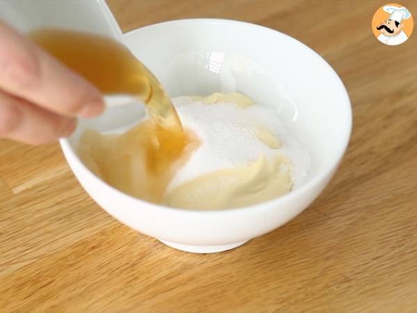 Zur Mayonnaise den Zucker, den Essig sowie Salz und Pfeffer hinzufügen. Gut mischen.