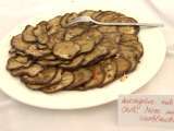 - Paprika und die Kerne entfernen, dann schneiden Sie den Rest der Bezirke in Obst und schneiden Sie sie in dünne Streifen schneiden. Aubergine auch geviertelt und in Scheiben schneiden.