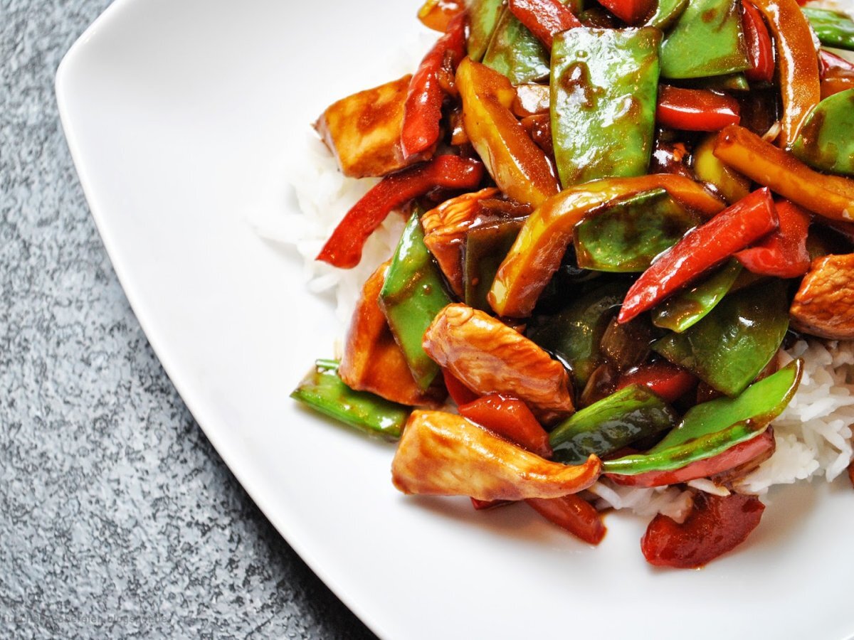 - Nun das Fleisch in etwas Sesamöl in einem Wok oder einer Pfanne knusprig anbraten. Dann das Gemüse zugeben und dieses mitdünsten. Mit Ingwer und Pfeffer würzen.