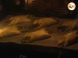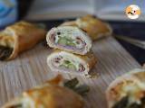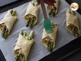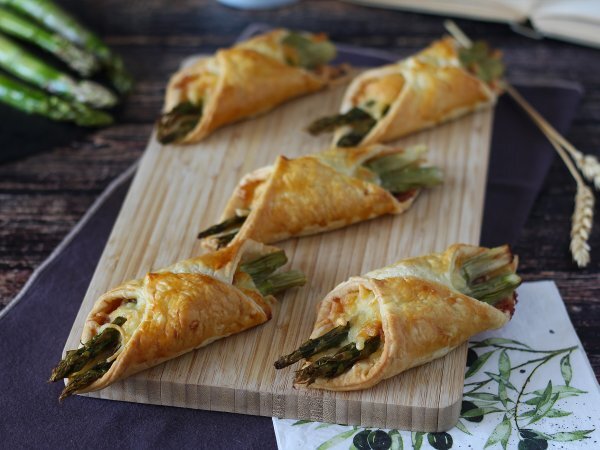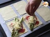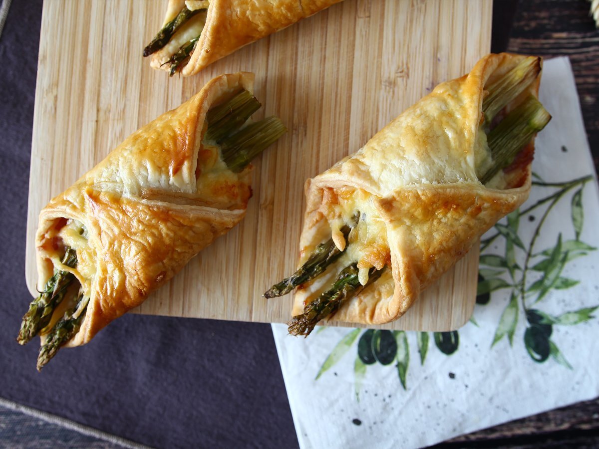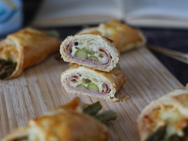 Blätterteiggebäck mit spargel, schinken und geschmolzenem käse