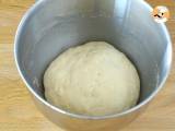 Lassen Sie den Teig an einem warmen Ort für 1-2 Stunden. Danach ein paar Sekunden kneten, damit es wieder geschmeidig wird.