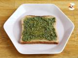 Auf einer Scheibe Brot die Pesto-Sauce streichen.