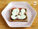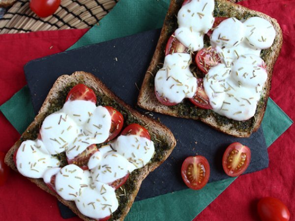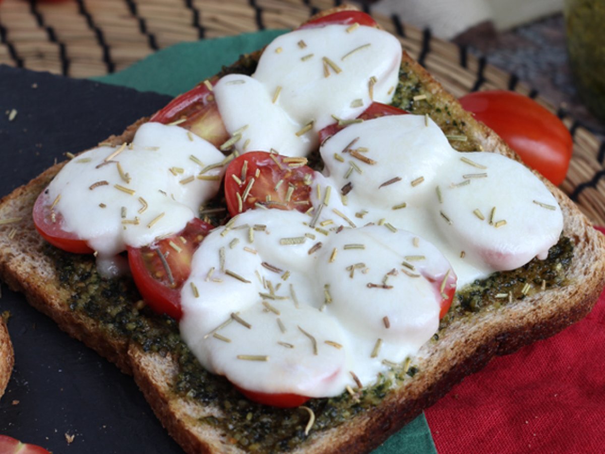 Das Brot sollte leicht geröstet werden, um eine knusprige Textur zu erzielen, bevor die Pesto-Sauce und die Beläge hinzugefügt werden.