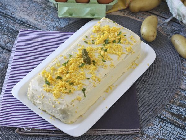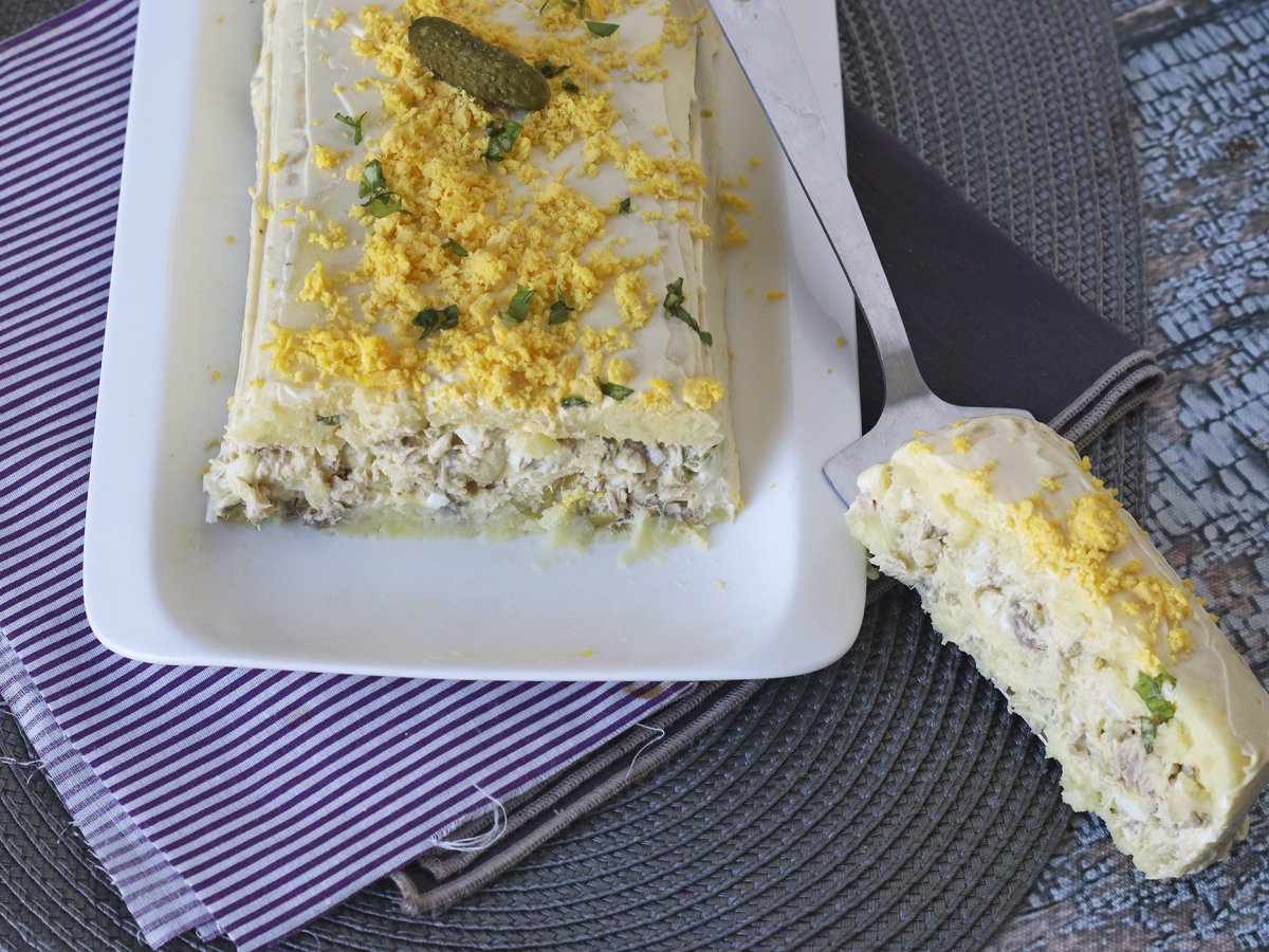 Einfacher kalter kartoffelkuchen ohne backen mit thunfisch und mayonnaise