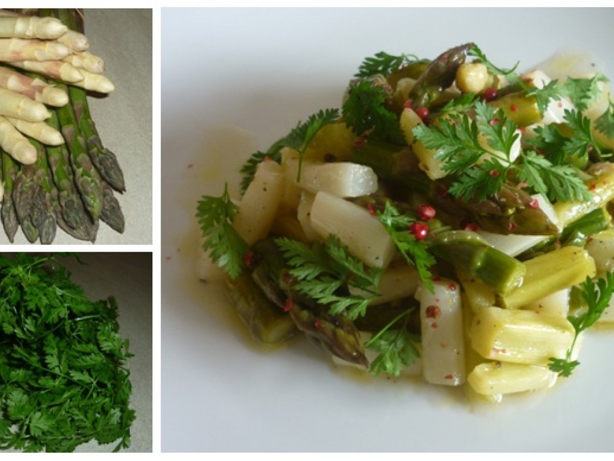 Endlich spargelzeit: einfacher spargelsalat mit kerbel und rosa pfeffer