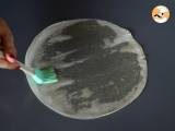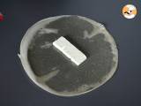 Falten Sie das Blatt, um den Feta zu verpacken. Markieren Sie das Batt nach jeder Falte.