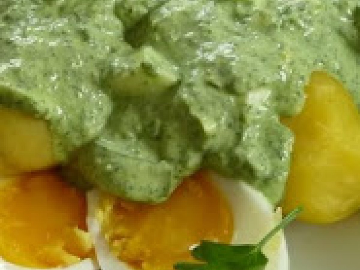 - Mit gekochten Kartoffeln und Ei.
