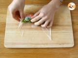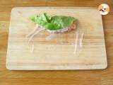 Klappen Sie den unteren Teil des Fladens über die Füllung, dann beide Seiten, und rollen Sie die Frühlingsrolle auf.