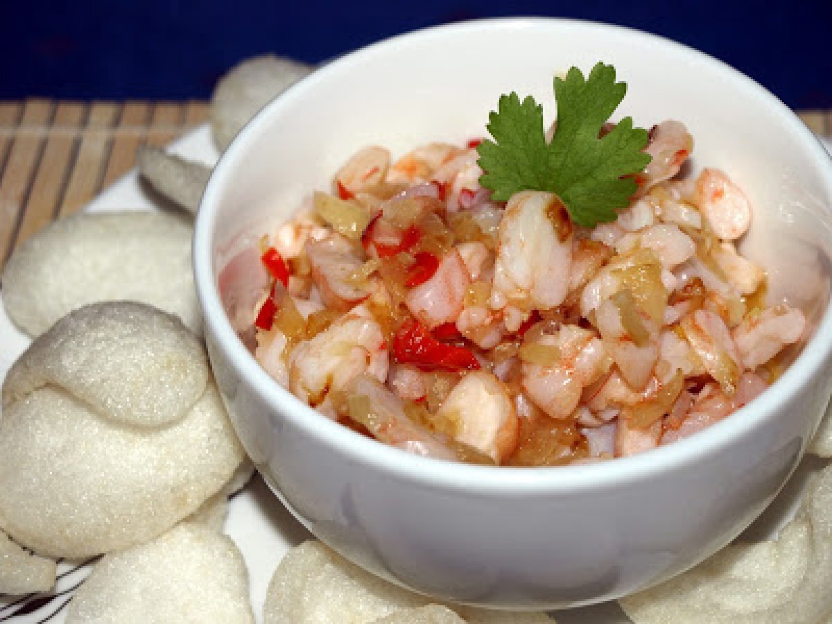 - Peppers, Knoblauch und Zwiebeln in Laos Mörser grob zerstoßen.