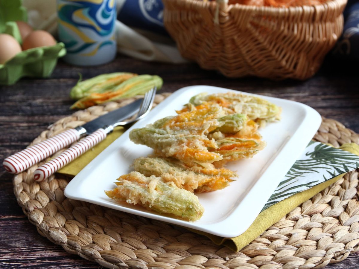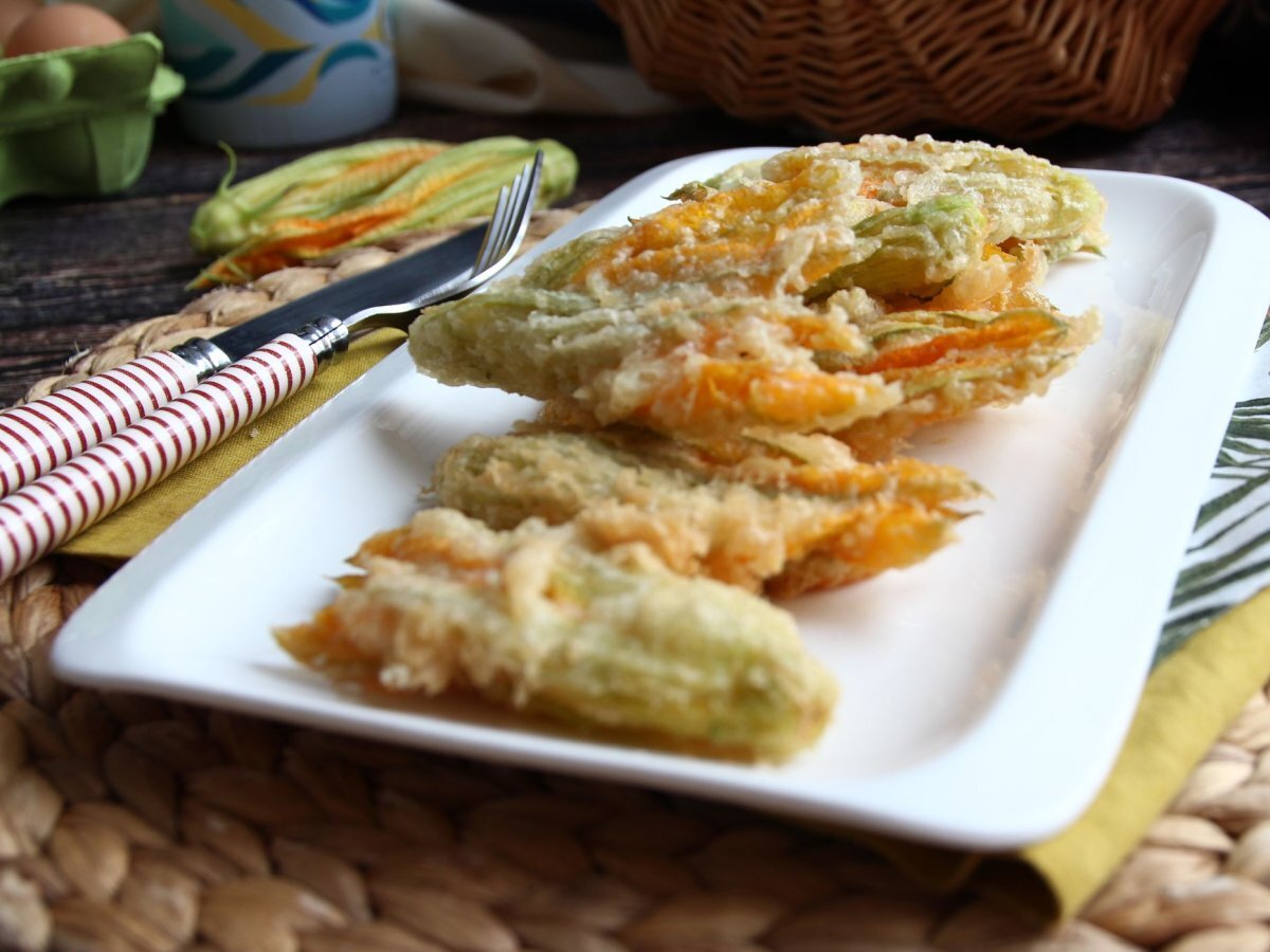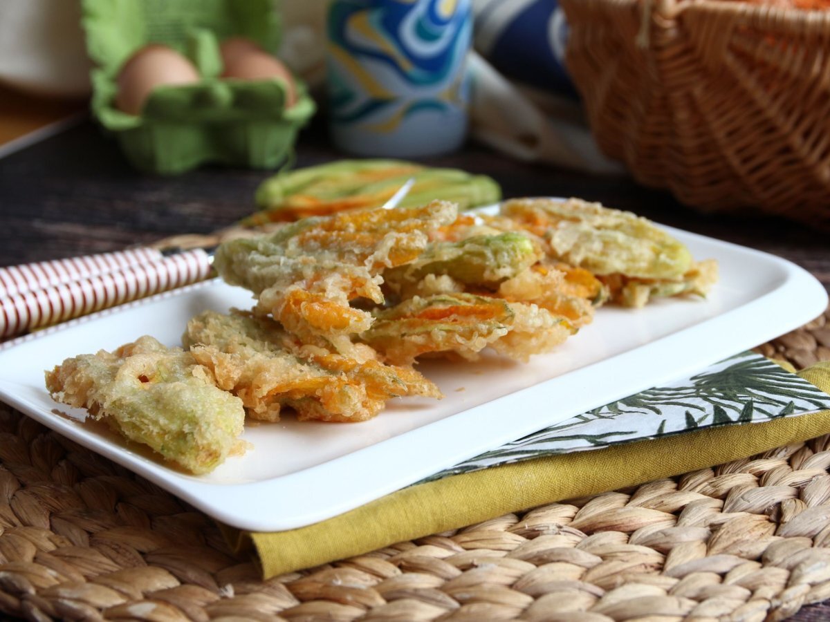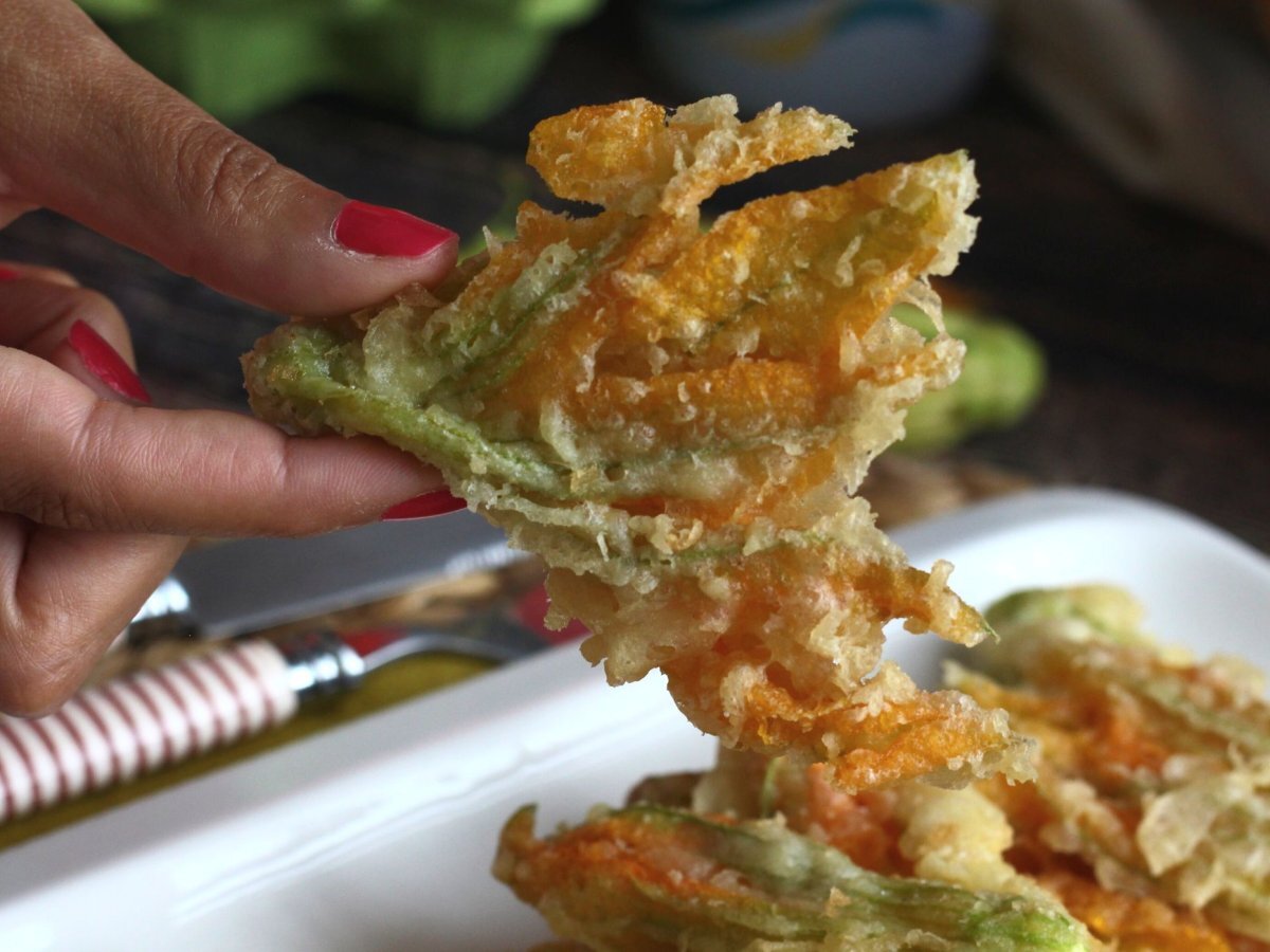Kürbisblüten (auch Zucchiniblüten genannt) sind ein hervorragendes Gemüse, das im Sommer sowohl im Supermarkt als auch beim Gemüsehändler leicht zu finden ist. Sie können in einer Vielzahl von Rezepten verwendet werden (Kürbisblüten-Nudelgerichte und gefüllte Zucchiniblüten sind ein italienischer Favorit), aber hier werden wir sehen, wie man sie frittiert zubereitet: ein einfaches und schmackhaftes Gericht, das jeder liebt. Wir haben einen Teig mit sehr kaltem Sprudelwasser verwendet, um diesen ersten Früchten mehr Knusprigkeit zu verleihen, ein kleiner Trick für ein trockenes und schmackhaftes Braten. Probieren auch Sie unsere delikaten frittierten Zucchiniblüten und Sie werden den italienischen Sommer in jedem Bissen schmecken!