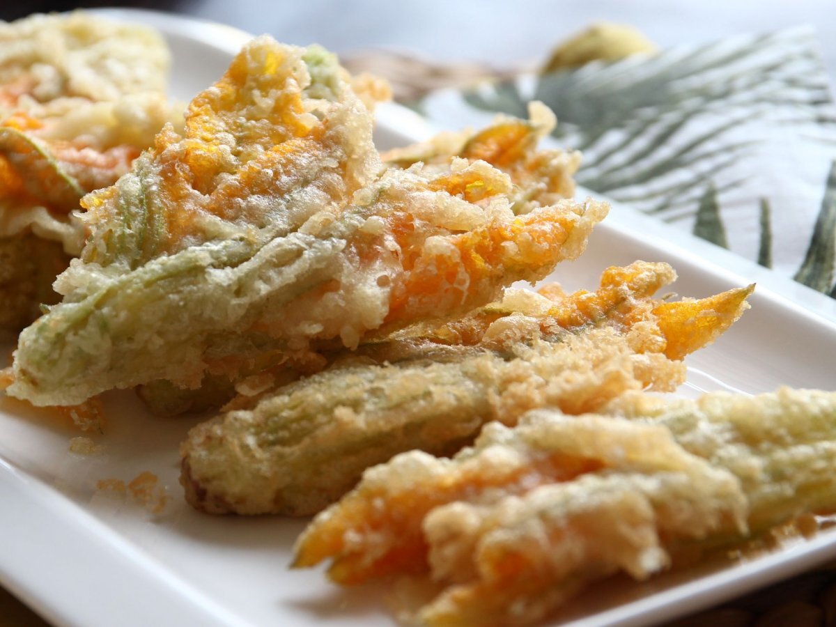 Wir empfehlen, die frittierten Zucchiniblüten noch warm und knusprig zu verzehren.