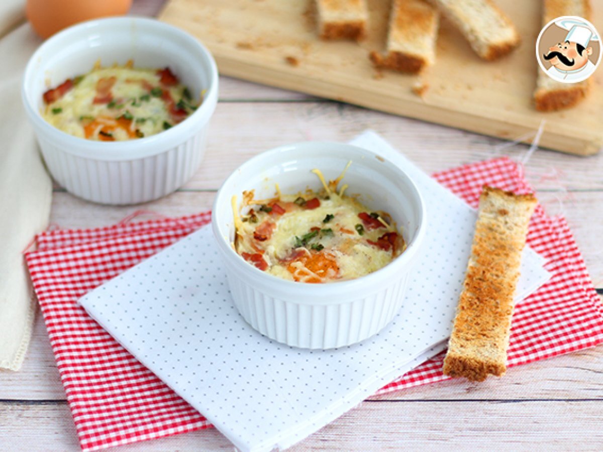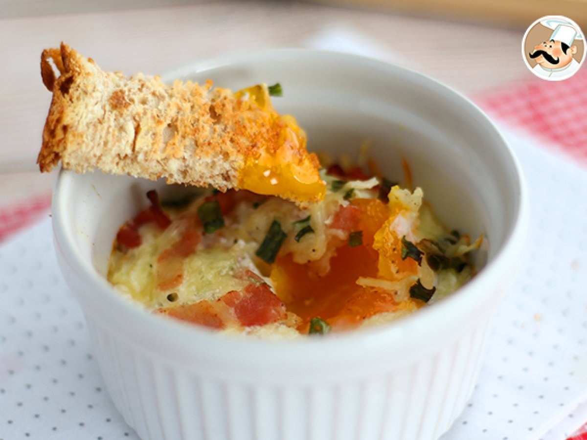 Wenn man ein einfaches und schnelles Rezept sucht, gibt es nichts Besseres als gekochte Eier! Ein Express-Kochvorgang für ein Ergebnis, das Groß und Klein gefällt. Was die Beilagen angeht, legen Sie einfach das auf, was Sie gerade zur Hand haben! Hier versuchen wir es mit Speck, geriebenem Käse und Schnittlauch. Wenn Sie Reste von früheren Mahlzeiten haben, sind diese Eier ein ideales Anti-Verschwendungs-Rezept ;-)