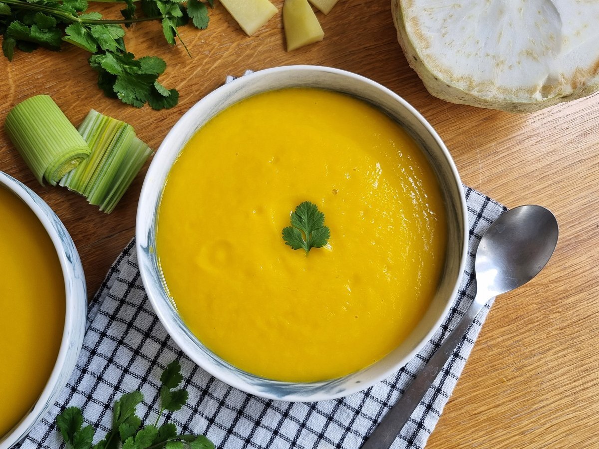 Für eine ultracremige und schöne Suppe gibt es nichts Besseres als den Thermomix. Hier haben wir eine ganze Reihe von Gemüsesorten gemischt, um Ballaststoffe und Vitamine zu tanken. Lassen Sie es sich schmecken und folgen Sie unserem Schritt-für-Schritt-Rezept unten ;-) Vergessen Sie nicht, ein paar Croutons hinzuzufügen, damit es beim Verzehr knusprig wird :-D