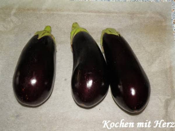 Als erstes die Auberginen waschen und trockenreiben. Auf ein Backblech legen und für ca. 40-45 Minuten in den Ofen geben. Sobald die Auberginen weich sind, aus dem Ofen nehmen und etwas abkühlen lassen.