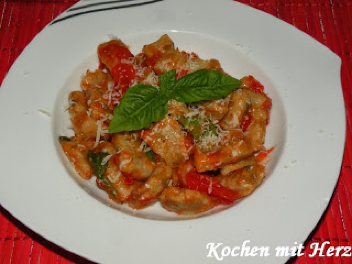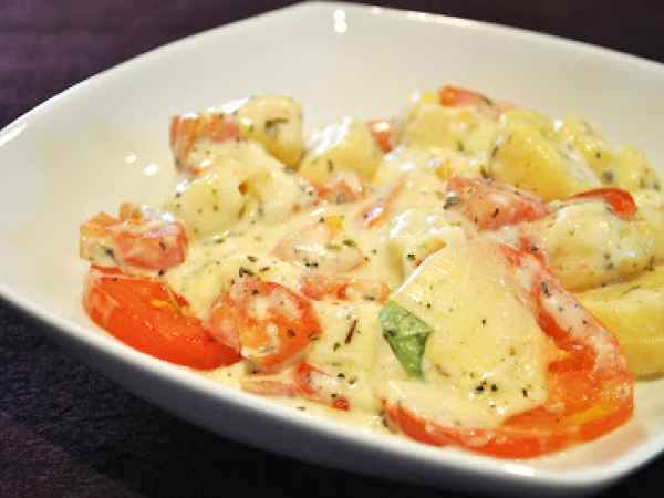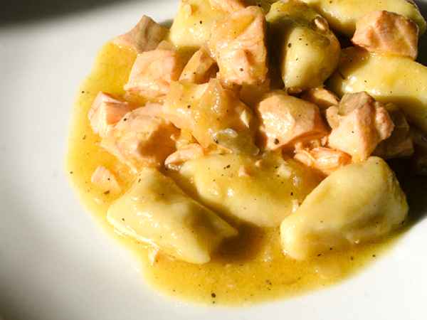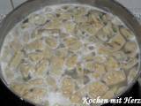 Inzwischen einen großen Topf mit Salzwasser aufstellen. Sobald das Wasser heiß genug ist, die Gnocchi darin kochen. Sie sind fertig wenn sie an der Oberfläche schwimmen.