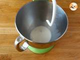Geben Sie die Trockenhefe in die Schüssel des Kneters und lösen Sie sie mit der lauwarmen Milch auf. 10 Minuten bei Zimmertemperatur stehen lassen.