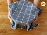 Eine Kugel formen und mit einem Handtuch abdecken. 1 Stunde bei Zimmertemperatur stehen lassen.