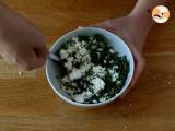 Legen Sie die Feta-Füllung auf eine Seite der Kreise, ein großer Esslöffel sollte genügen.