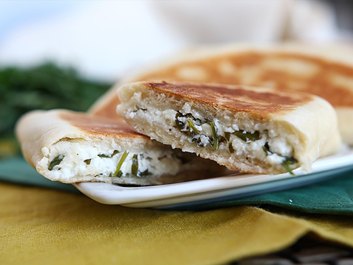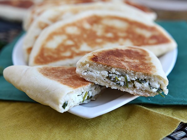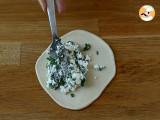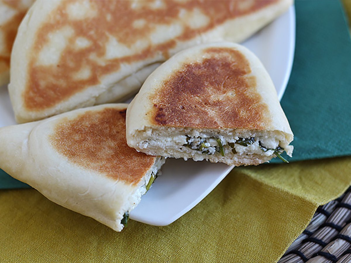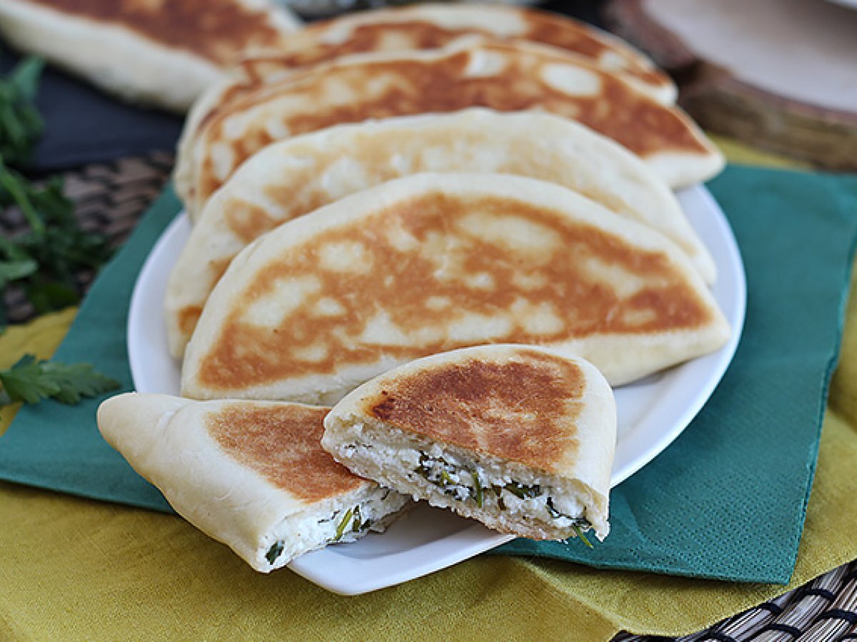 Gözleme - türkische pfannkuchen gefüllt mit feta, zitrone und petersilie